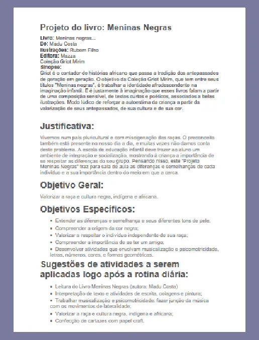 Consciência Negra • As Meninas Negras – Conto e AtividadesContos, Datas Comemorativas, Projetos Compartilhe! Conto – As Meninas Negras BAIXAR AQUI Atividades – As Meninas Negras BAIXAR AQUI Projeto – As Meninas Negras BAIXAR AQUI Formulário Professores VipsINSCREVA-SE e fique por dentro das NOVAS ATIVIDADES!EU QUERO!