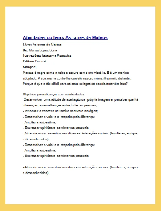 Consciência Negra • As Cores de Mateus – Conto e AtividadesContos, Datas Comemorativas Compartilhe! Atividades – As Cores de Mateus BAIXAR AQUI BAIXAR AQUI Formulário Professores VipsINSCREVA-SE e fique por dentro das NOVAS ATIVIDADES!EU QUERO!