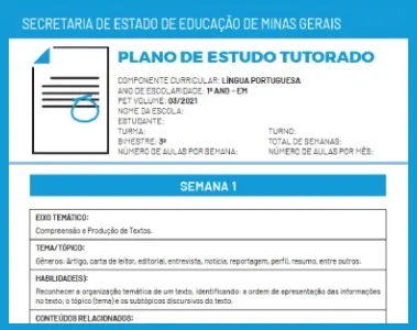 Plano de Estudo • Língua Portuguesa - Ensino Médio 1°Ano